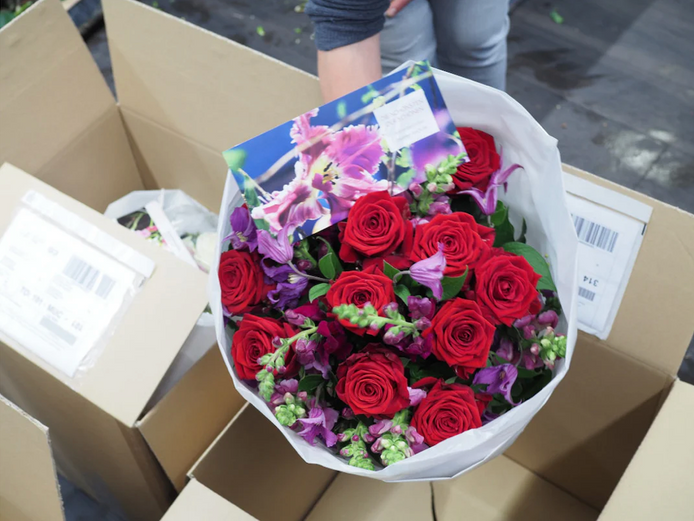 Our flowers will be wrapped and send in strong simple boxes with a gift card.